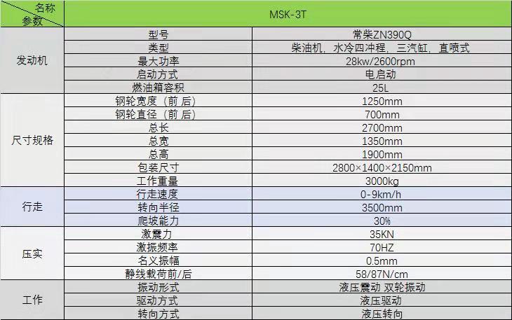 MSK-3T雙驅(qū)雙振全液壓壓路機(jī)